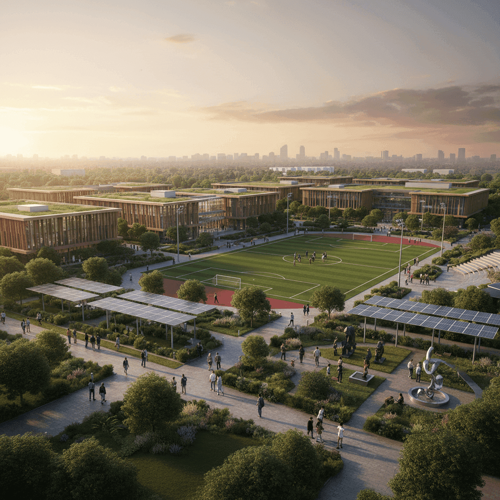 A 10-acre sustainable smart campus designed to inspire the next generation of innovators, athletes, and artists in the heart of Noida.
